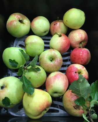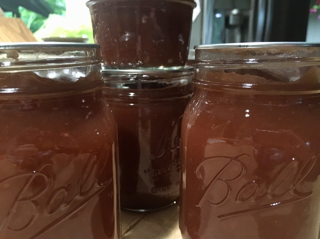 The apples are ripe and its time to make apple butter. When you live on property with apple trees, the temptation to make apple butter is overwhelming. Like childbirth, you are excited at the prospect and then half way through you wonder what you were thinking when you started this endeavor! Picking, cleaning, peeling, cutting, with sugar and spices gracing on every surface. The fruit flies arrive in force. And then cooking, pureeing, and putting the apple butter into a turkey roaster to cook down in the oven. It does smell divine! And then mess and the hours over the stove, the massive cleanup of pans, bowls, spoons, ladles, canning equipment reminds you of how much work this is! And then you clean again to get what you missed the first time.