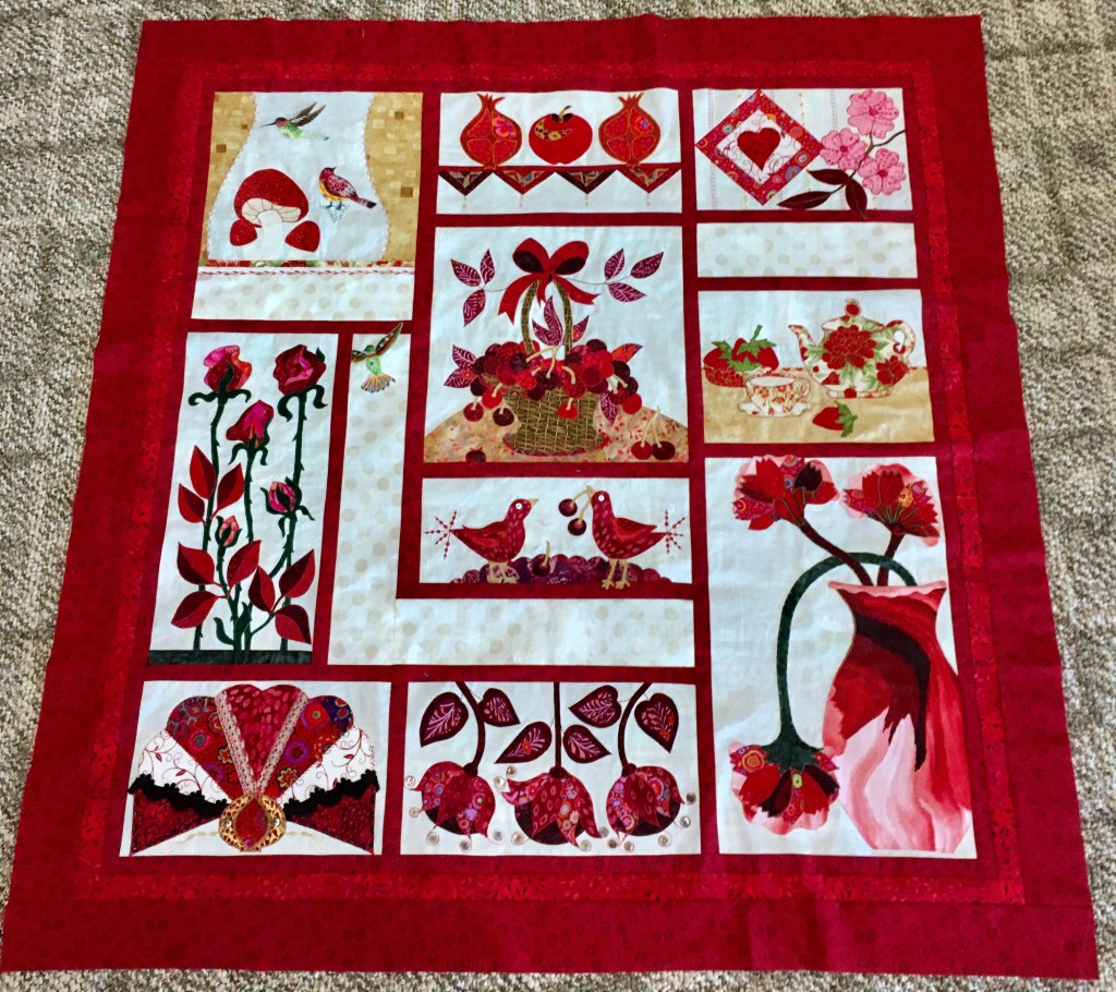 Day 5 I added the borders and started looking at fabric for my next applique project. So excited to have this top completed. Sandwiching and quilting TBD.