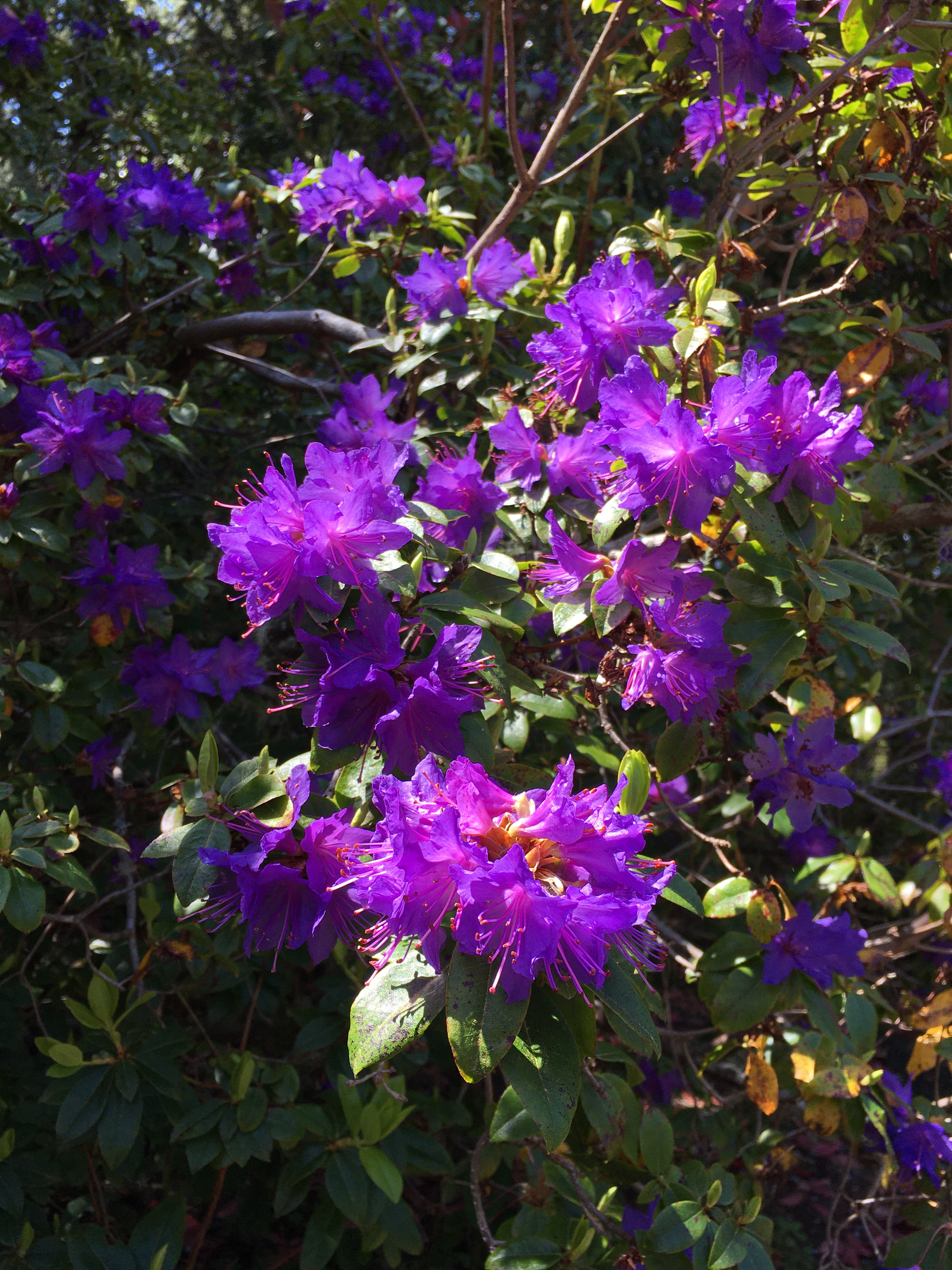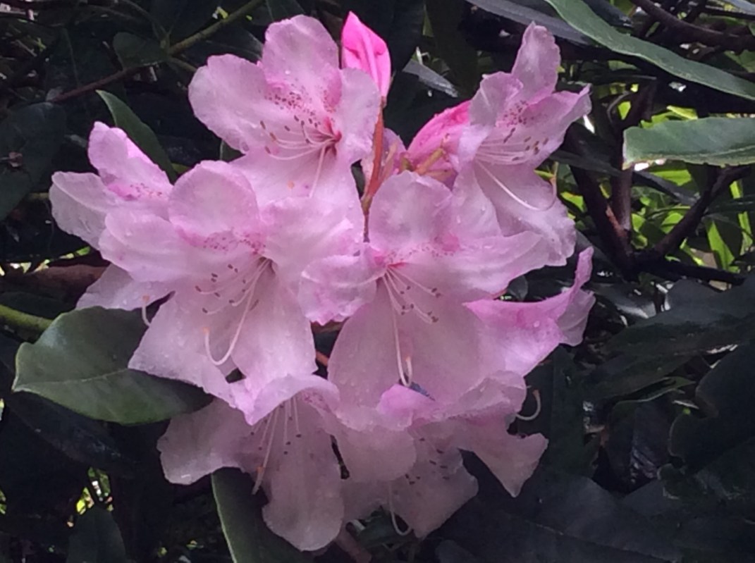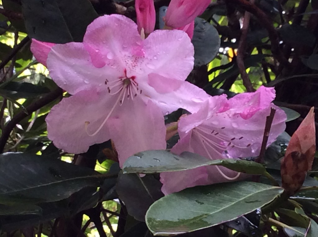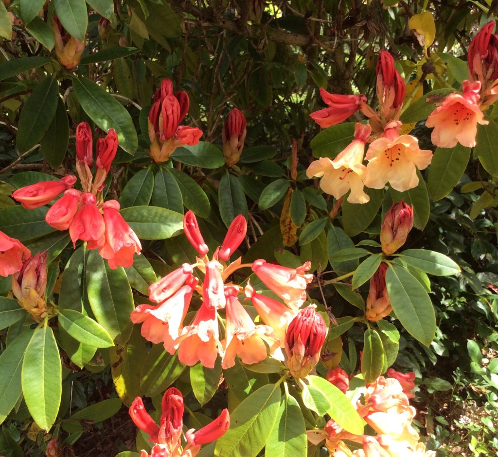 The Rhodies will be blooming for a while. They last quite a while and now that some are fading, there are later varieties starting their blooming.