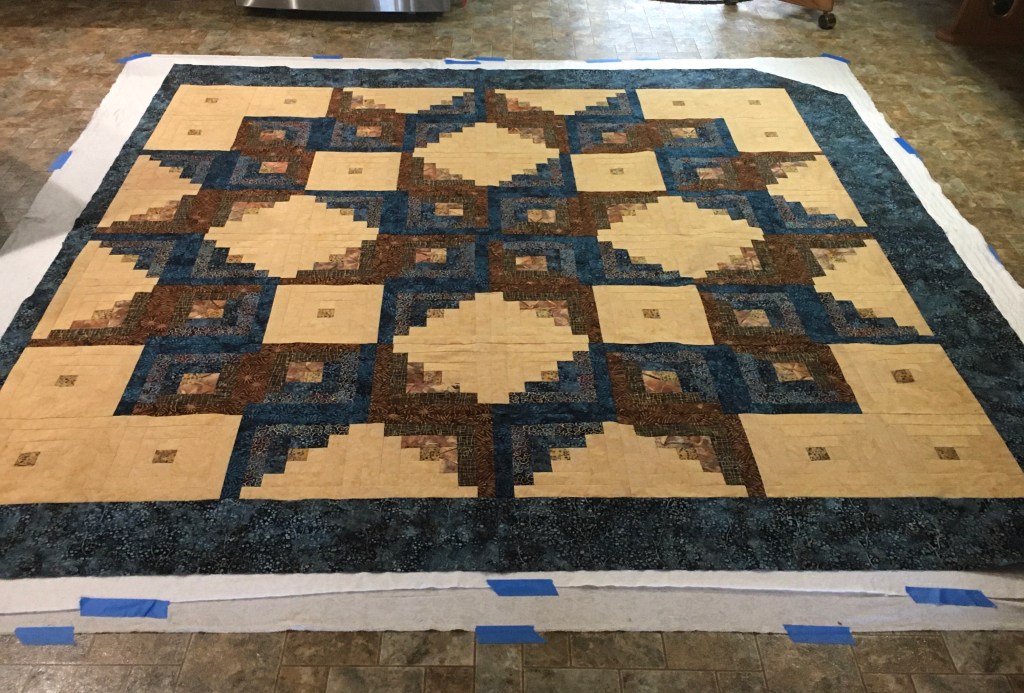 But I did manage to sneak in some sewing. I started quilting on my Carpenter/Log Cabin quilt for our master bedroom. To refresh your memory, here is the pattern.