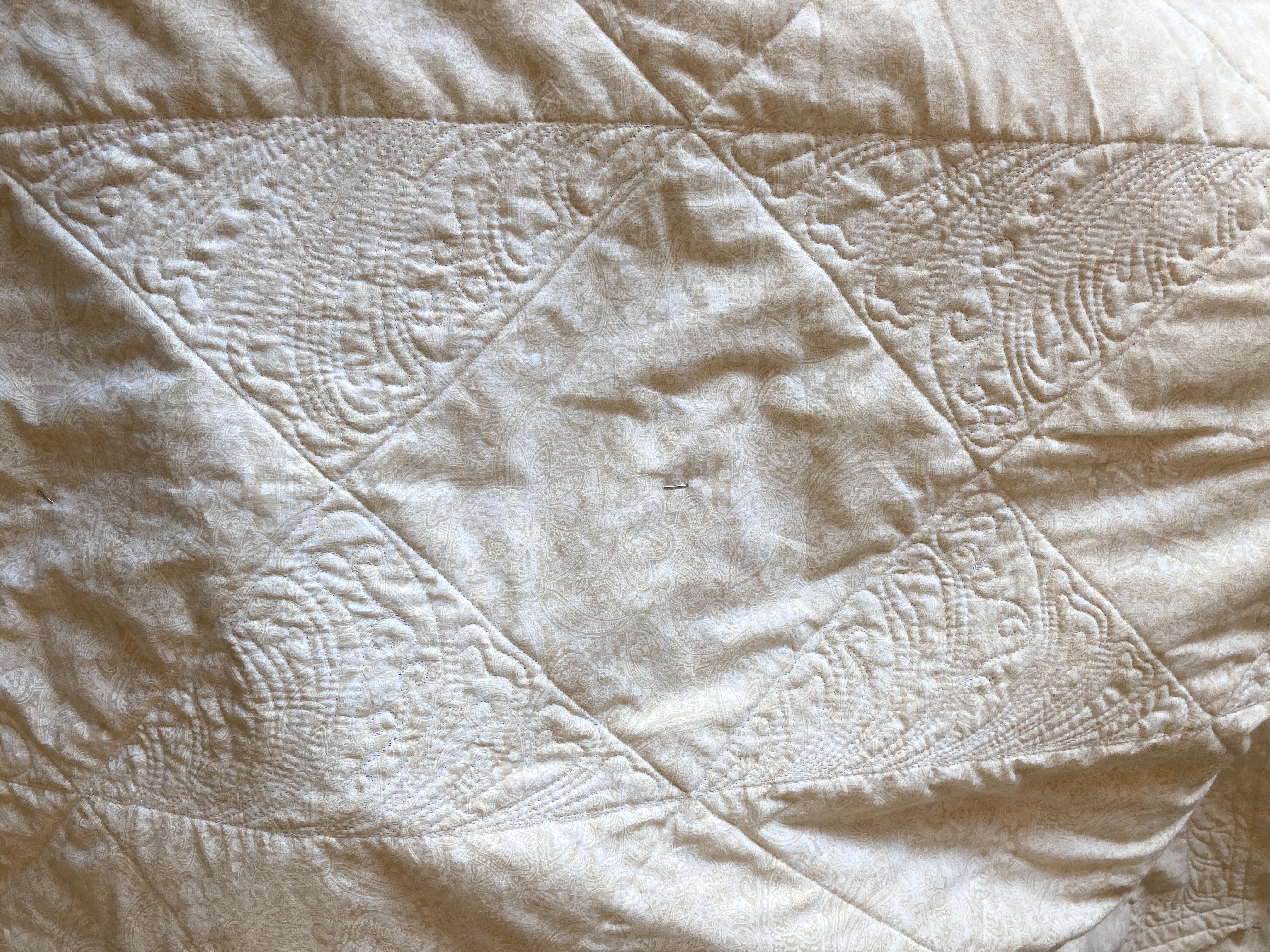 The first border has cubby feathers, which are repeated on the outside border. Tomorrow is binding day and then this quilt will be off to its new home with my former co-worker. I really enjoyed my quick EQ8 creation and will likely use this pattern again when I get a call for a “quick quilt”!