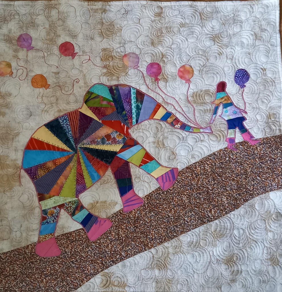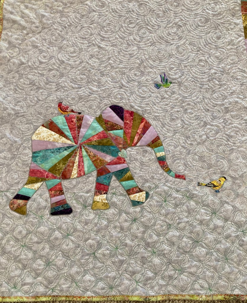 I have! The three admins (me, Cathy and Sandra) at the Fun With Free Motion Quilting group on Facebook decided to do a quick, fun project together to brighten the cold winter days. Sandra selected the Elephant & I pattern by Jennifer Sampou.