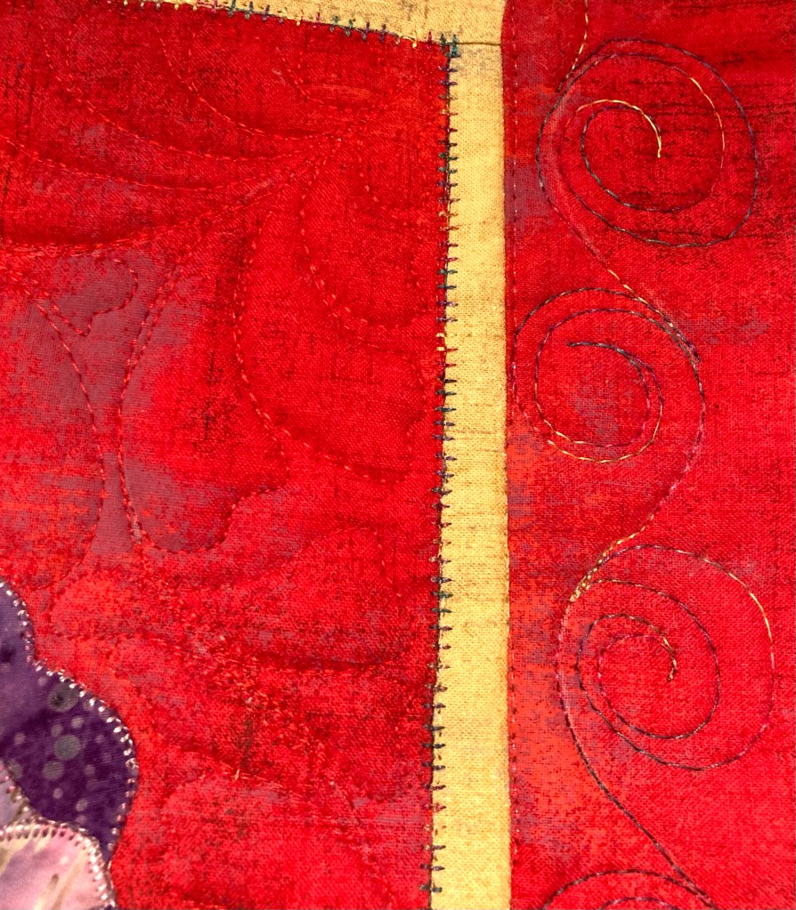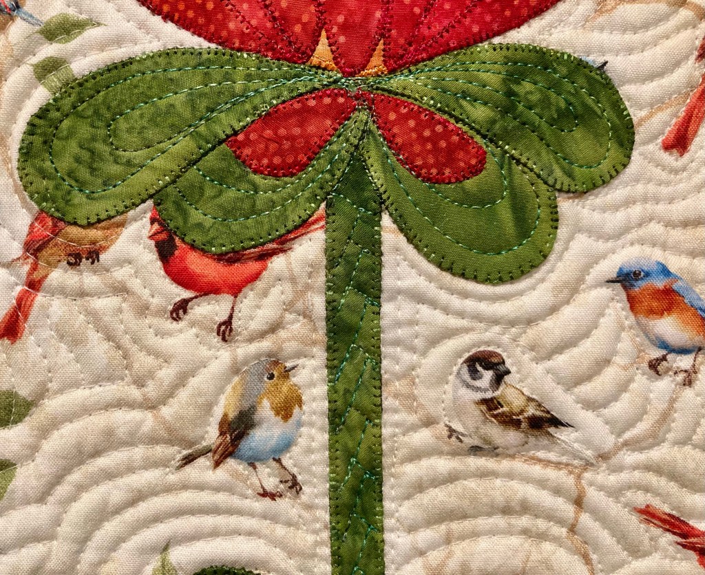 Quilting close up. I originally planned to quilt right over the birdies, but couldn’t do it!