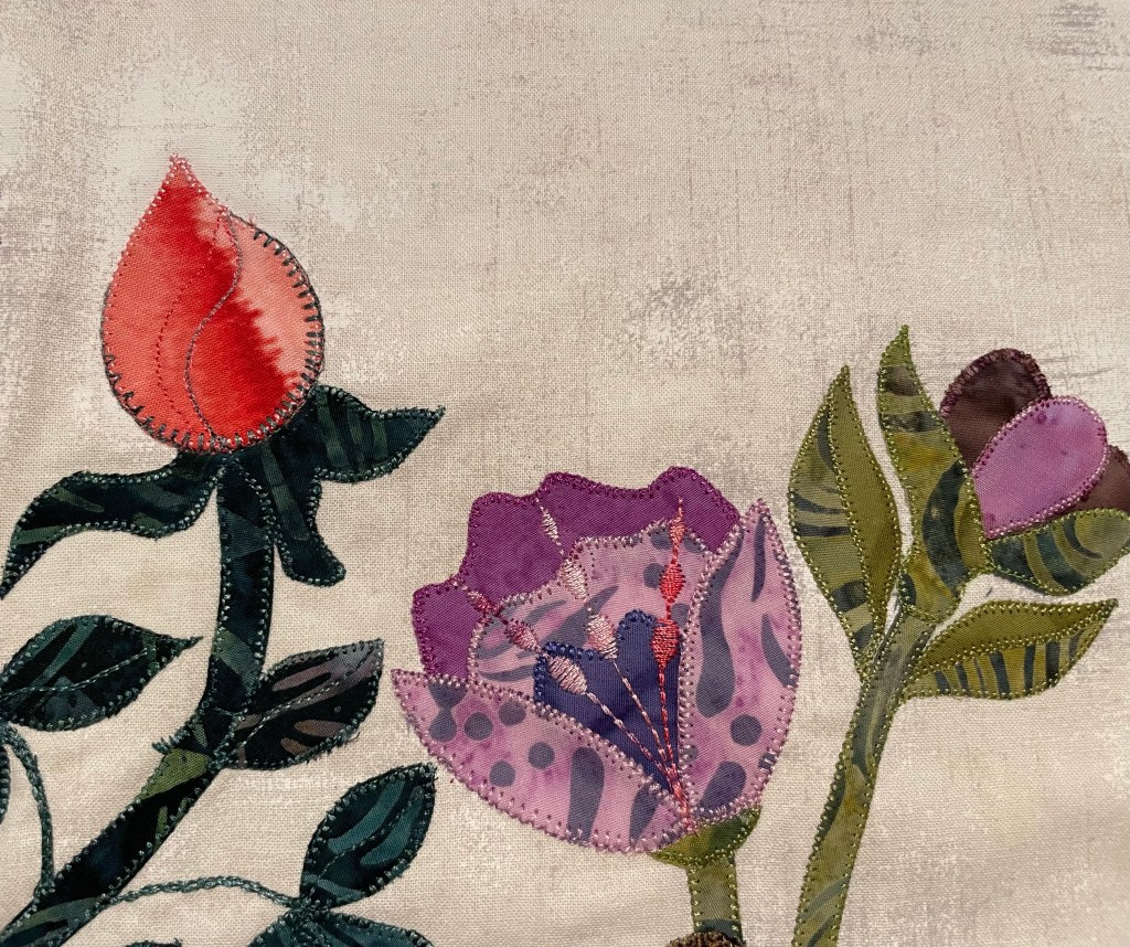 - Slow sewing is like slow food, delicious and satisfying. My quilting output is less, but my satisfaction is greater. I really like to do things in a speedy fashion, but there are some tasks that benefit from less speed and more intention. Taking up applique threw me into this dilemma: Can you applique quickly? It’s almost impossible to applique hurriedly. You can applique more hours in the day, you can be more organized and have your tools lined up, and ready to go and you can use fewer fabrics and threads (but that is not my idea of fun). Still, at its essence, applique is a slow endeavor. As I fell in love with applique, I discovered that, like making bread, it takes as long as it takes. Tracing and cutting hundreds of small pieces, positioning them, securing them, and stitching them is a true act of creation. I am often a bit sad when I finish a project and it goes off into the world to live its best life.