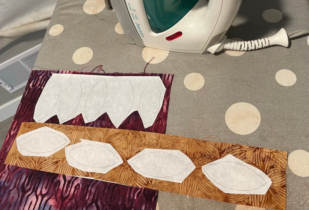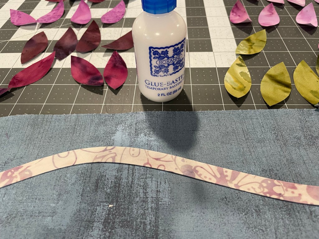 - Starch your fabrics. I always spray starch my background and stem fabrics. Stem fabrics are heavily sprayed. Starching your fabric adds to the stability and reduces fraying. If you are fussy cutting shapes, heavy starching is critical.