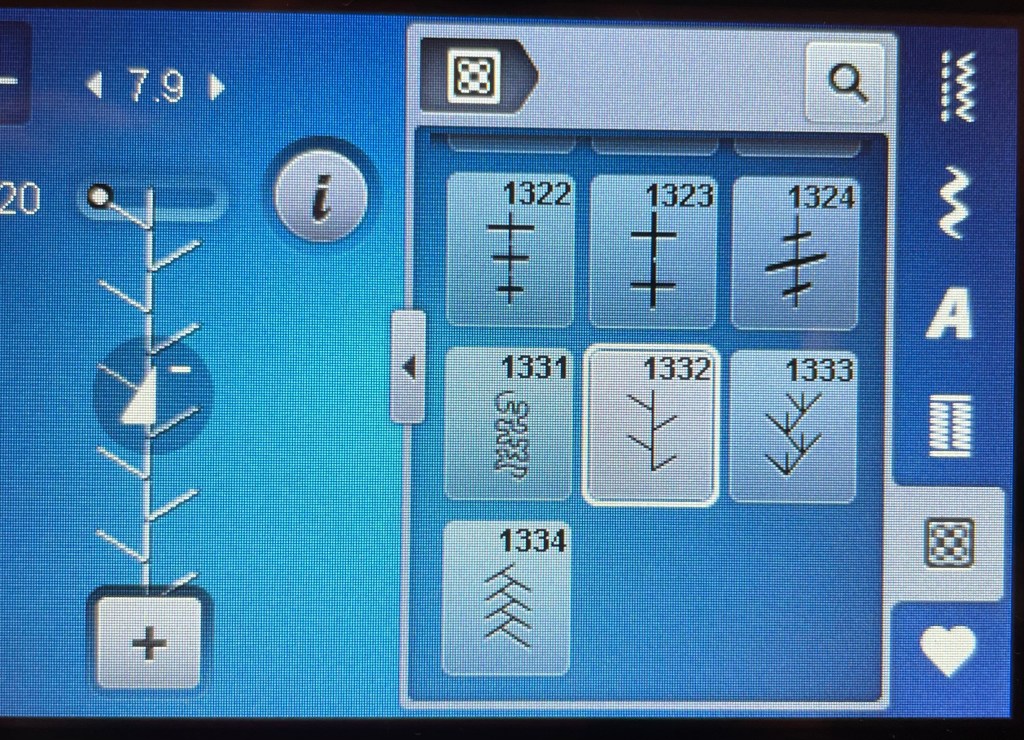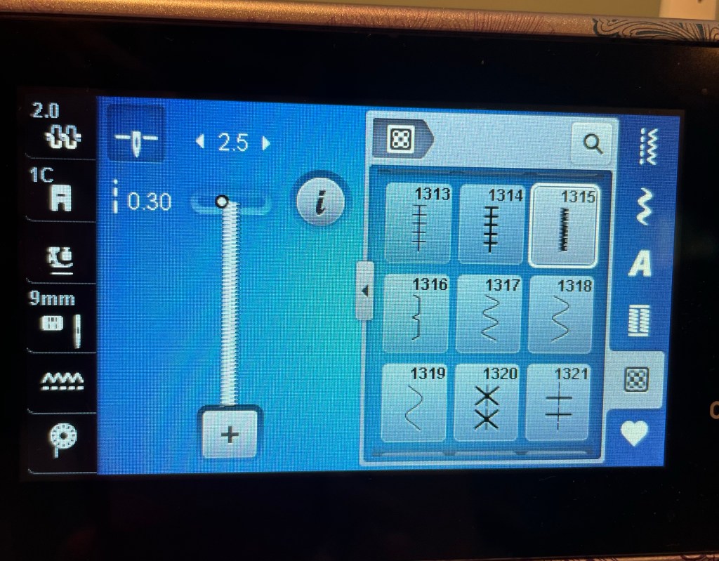 Back to my pre-sets for our project! I like to set a short straight stitch for traveling between sections (like around a portion of a leaf).
