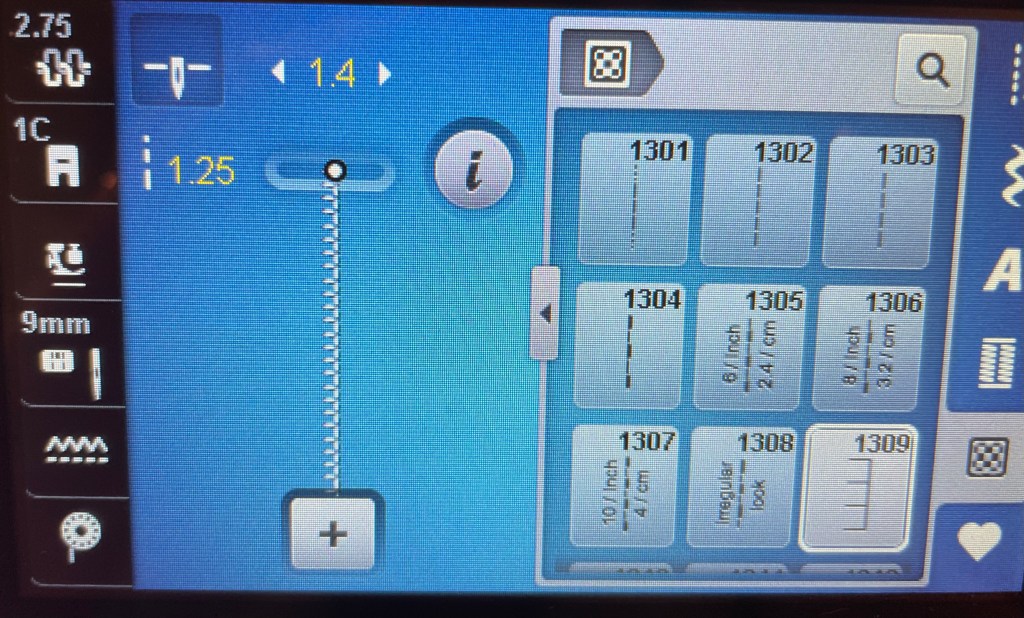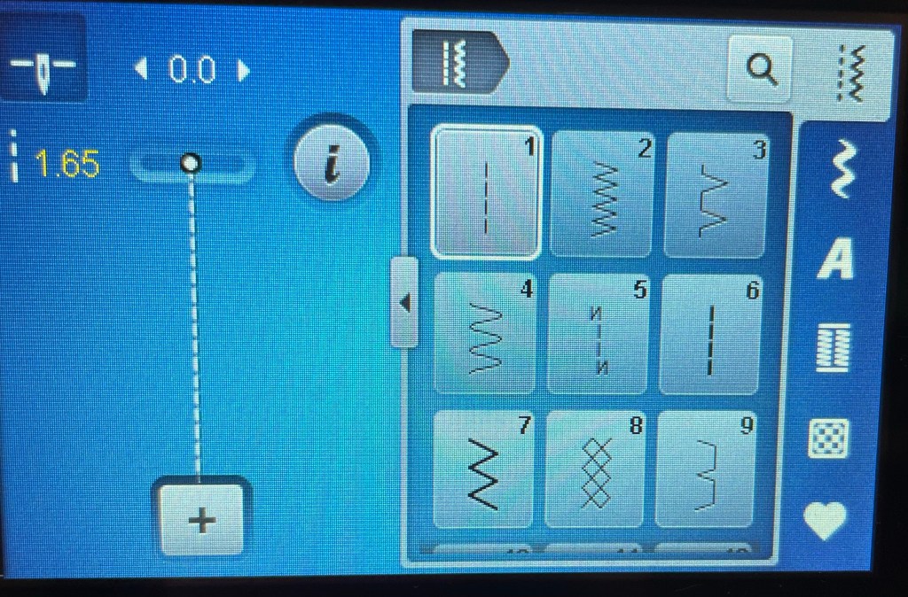 When I start an applique session, I preset all my commonly used stitches – straight, satin and blanket.