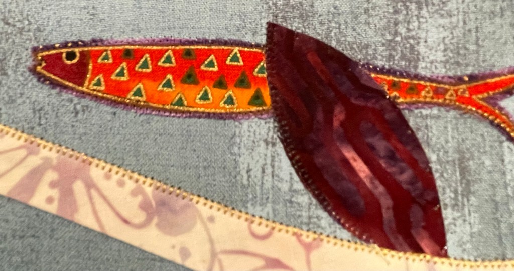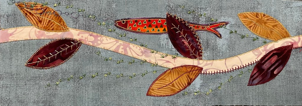 Wait a minute, let’s embellish a bit! This little deco stitch is great for adding trailing foliage. I added some bubbles to the fish mouth as well.