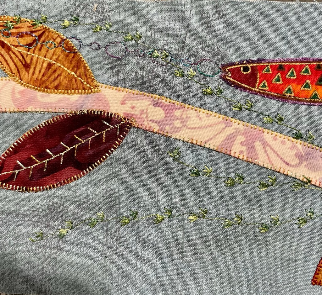 As all ways Lennea I forget time when reading your blogs. Loved how you showed us how you do your rawedge applique in the wee story of Bubbles. Adding the trailing foliage and bubbles turned it in to a beautiful 3D piece of art. I think most people forget all their fancy stitches they paid big money for LOL. Many thanks for sharing the basics with us like needle size and threads!? A real puzzle for a beginner. Cheers Glenda