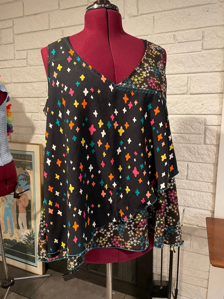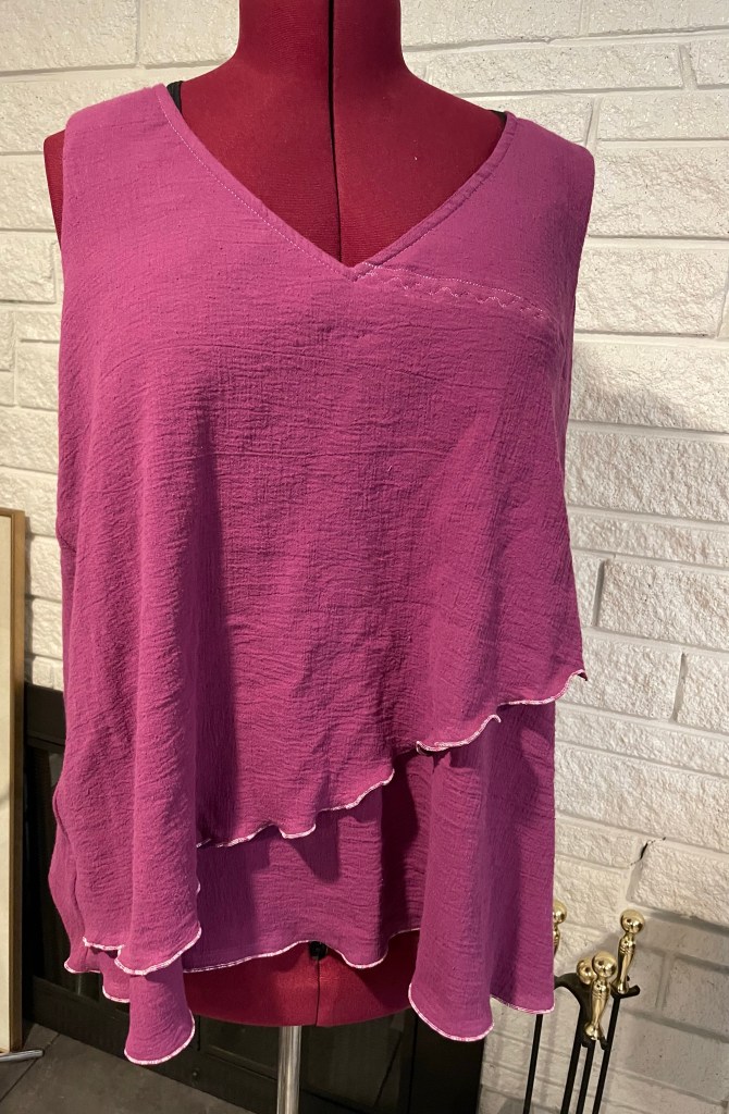 After nearly 7 decades on planet earth, I have tired of the rules for women’s attire. I tired of it about 20 years ago, about the time my waist deserted me, to be truthful. Once I retired, I began a search for my perfect “mature body” pattern. Roomy enough in the bust and long enough (us long waisted gals are tired of tops that are always too short after you wash them) and never to snug or too baggy. A pattern I could make over and over and over and never worry about fit. About 5 yrs ago, I found my perfect pattern in the vintage listings on eBay. Every few years, I make a new batch. I also have this patter in two different size ranges, adding to its versatility. 🙃