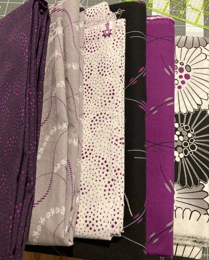 Fabric stash: Our most recent visit to one of my favorite quilt shops – Creative Union Fabrics up in Port Townsend, WA – in late Nov included this wonderful purple grouping. https://creativeunionfabrics.com. I also have a number of layer cake (10″ square sets) that are languishing on the shelves, including a holiday layer cake bought on sale in Nov.