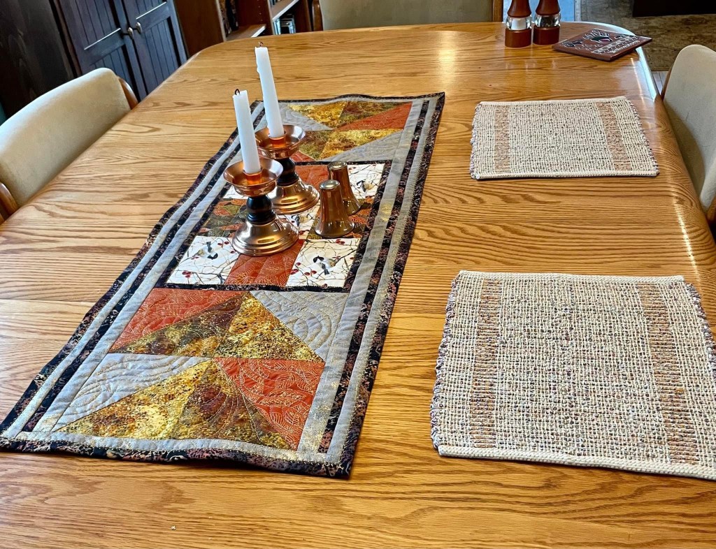 A special request summer table runner for a friend. And the fall runner that I made for her.