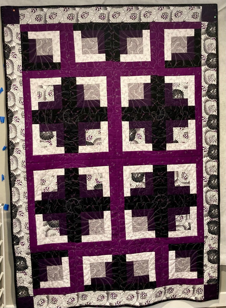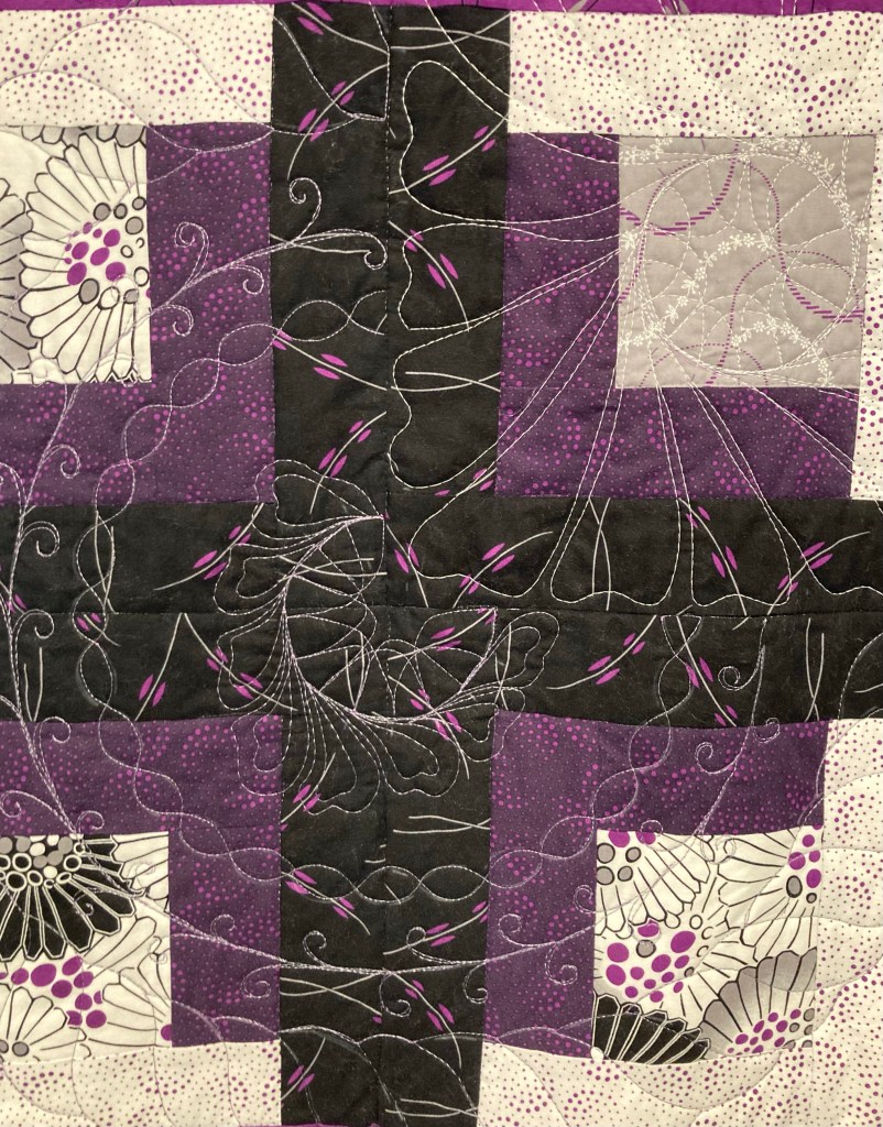 Purple Reign fabric. Done! And I did some experimental FMQ on the twin size finished project (see below).