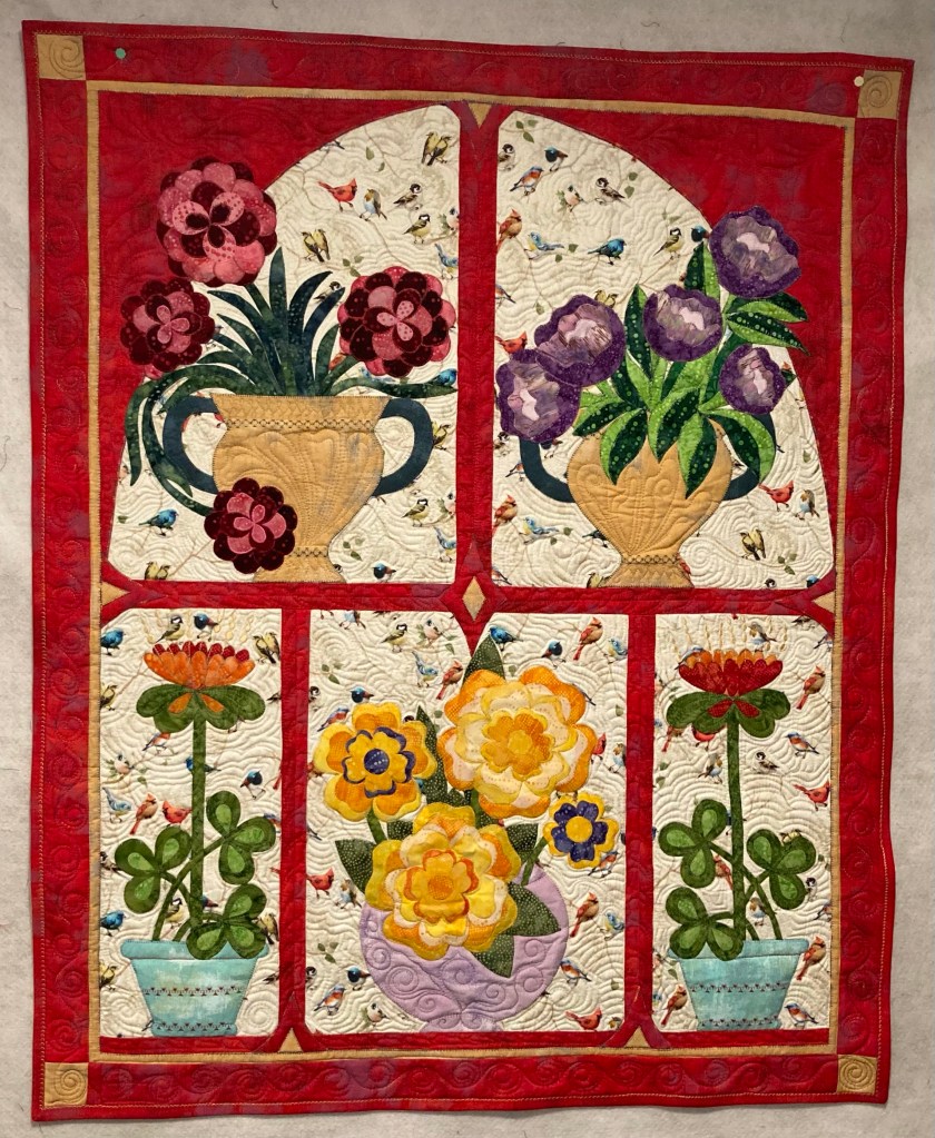 Personal Challenge: This year, Sandra and I selected Esther Aliu’s On My Window Flowers Bloom pattern for our applique challenge. We also decided to do a second Esther pattern, Secret Garden.