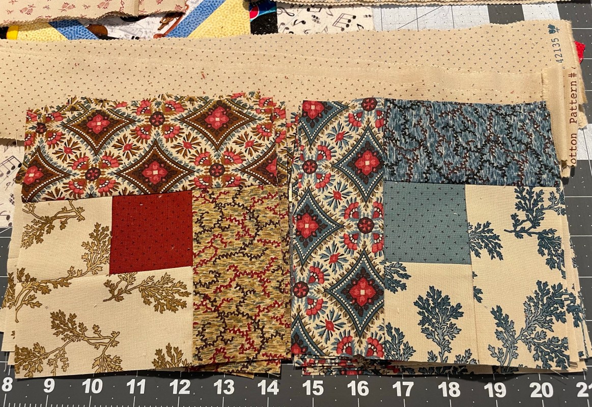 Right away, I realized there was a prime candidate. Two jelly rolls bought when I first started quilting seriously when I retired in 2015. Why did I buy them? I was new to quilting and they were on sale. Why haven’t I used them? They are reproduction fabrics and not really my style or color. I even packed them up when I moved two years ago and then unpacked them. Two round tributes to “what was I was thinking?”, a well known impulse buying form of fabric remorse.