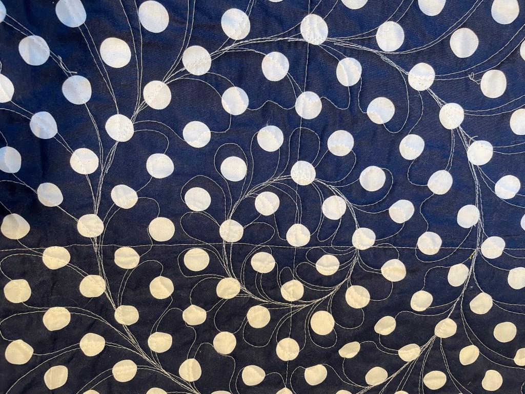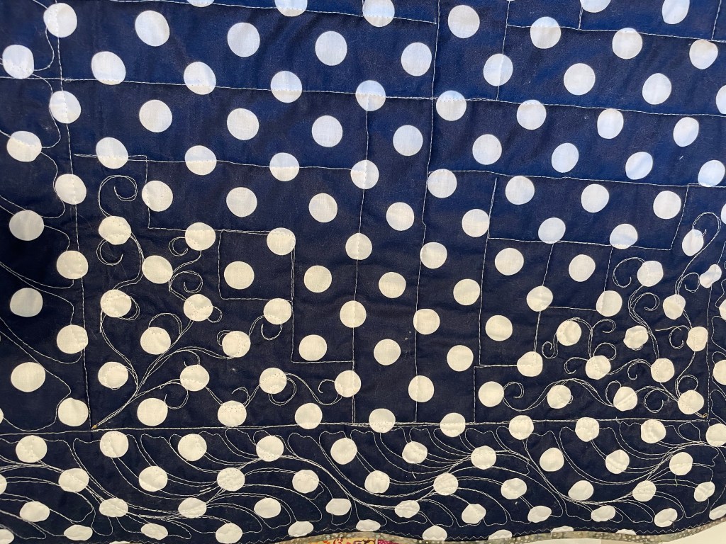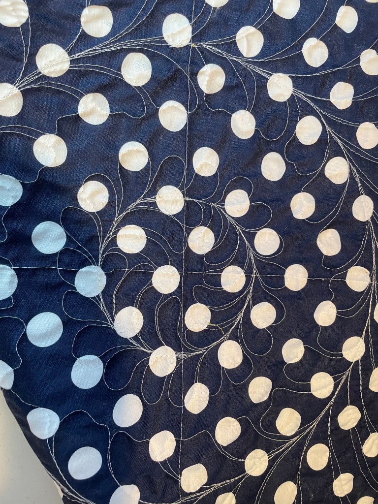 Do I have a photo of the whole quilt quilted? Well, no. No I do not. This one went out the door so quickly to a family members that I did not get a whole quilt photo! Oops!