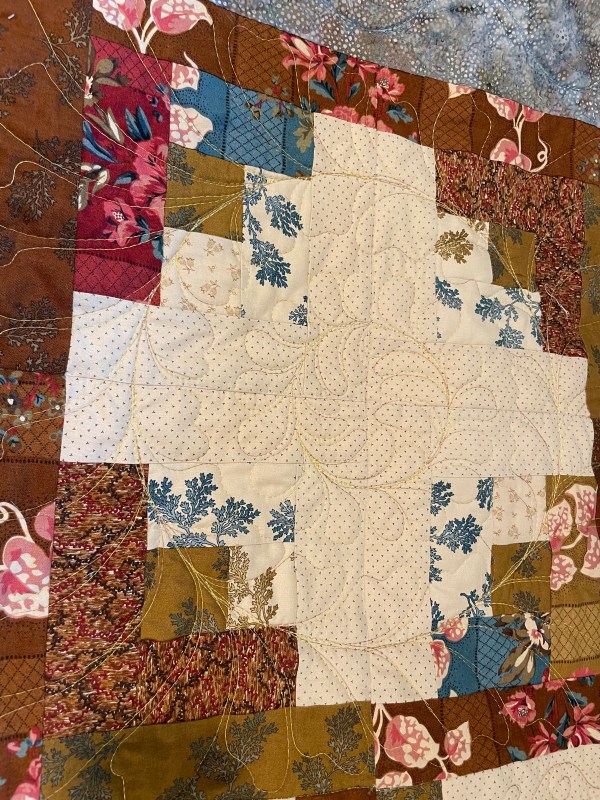 And then I grabbed my iPad to doddle a bit. I finally settled on quilting the light centered sections with a feather medallion and the dark centered sections with SID and swirl/feathery each corner.